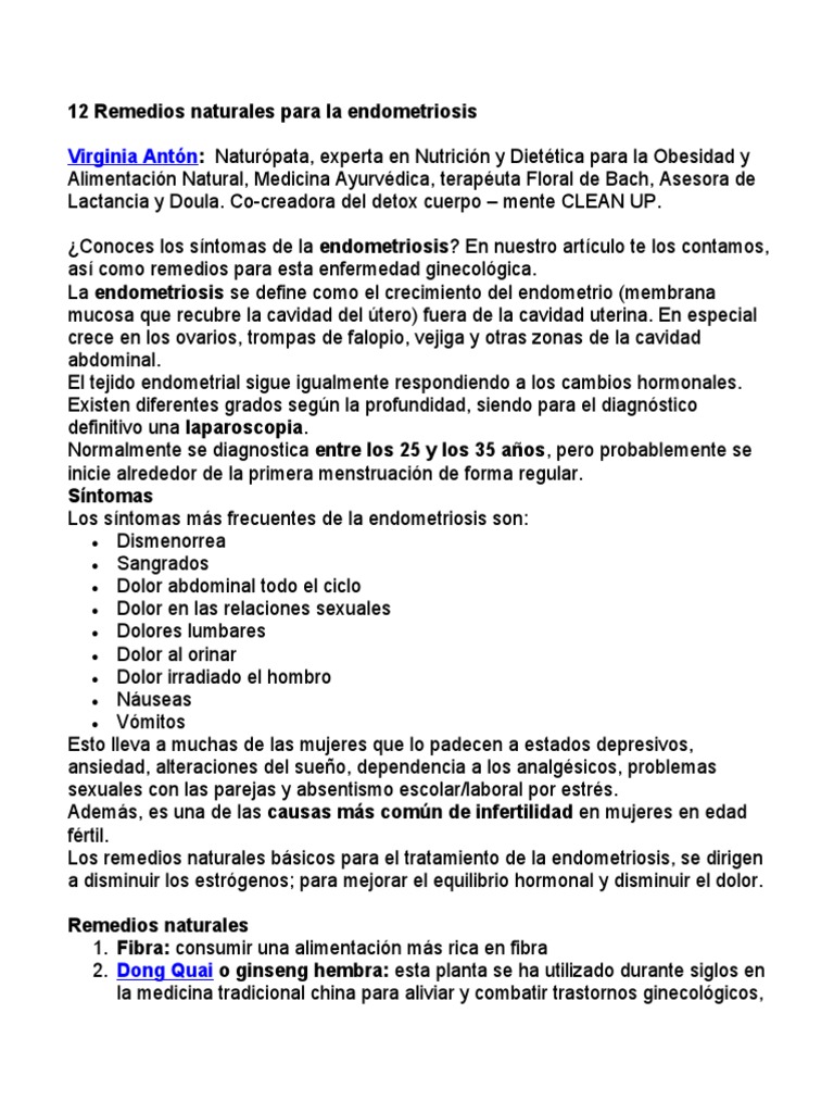 Además es una de las causas más común de infertilidad en mujeres en edad fértil. Tratamiento natural endometriosis 10 remedios caseros para la endometriosis. 12 Remedios naturales para la endometriosis.