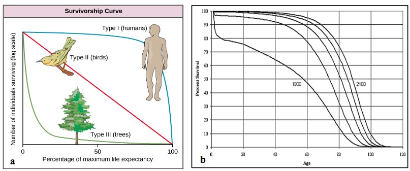 IV Age distribution is relatively uniform. It can help us to know about various aspects such as life expectancy and age-specified survival of a particular species. Which curve best describes survivorship in humans who live in undeveloped nations.