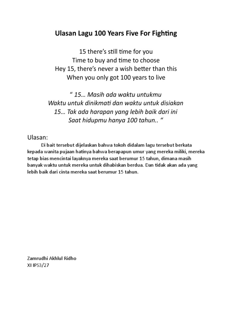 Chorus Fifteen theres still time for you Time to buy and time to choose hey fifteen Theres never a wish better than this When youve only got a hundred years to live 12 Embed. He would have been 101 years old in September and while his mind was still sharp and his sense of humor intact his body was finally giving out. She was living at the same base with her sister and brother-in-law who were part of the same branch of the military. When you only got hundred years to live Im thirty three for a moment Still the man but you see Im of age A kid on the way A family on my mind Im forty five for a moment The sea is high And Im heading into a crisis Chasing the years of my life Fifteen theres still time for you Time to buy time to lose yourself Within a morning star. Lyrics to Years by Five For Fighting. When you only got 100 years to live. Im 33 for a moment. And Im heading into a crisis. When Youve Only Got A Hundred Years To LiveKuwabara X Hiei 100 YearsFive For Fighting Im fifteen for a moment Caught in between 10 and.